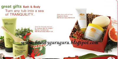 Pamper your love ones with gifts from ORIGINS Holidays sets. Choose from various skincare and body care series. Promotion sets are as attached in the picture below. According to the newsletter, not only the sets gives you savings up to 40%, the holiday gifts boxes are also made from 65% recycled materials. That makes one Origins holiday gift set with two benefits :)